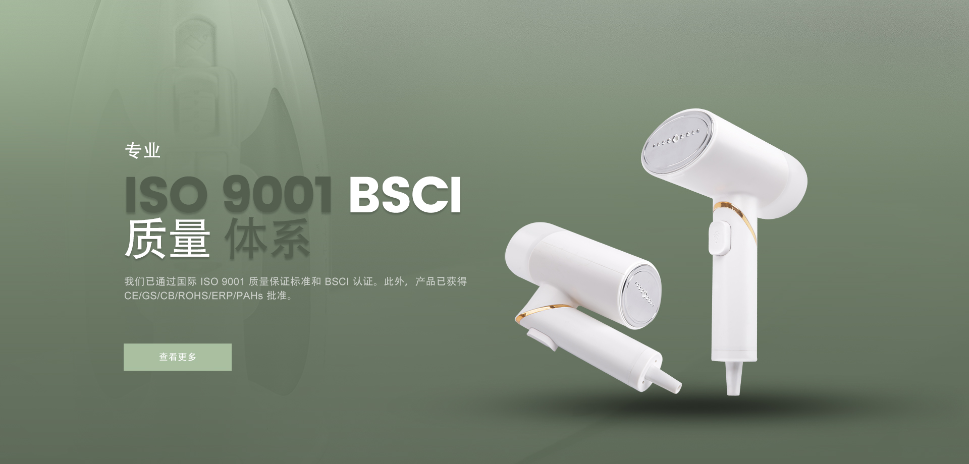 我們是一家專業(yè)的制造商和出口商,提供設計、開發(fā)、生產(chǎn)、銷售和相關(guān)服務,產(chǎn)品包括電熨斗、手持式蒸汽掛燙機、蒸汽刷等。 美威工廠占地4000平方米,擁有雄厚的技術(shù)力量和先進的設備,可以滿足您對生產(chǎn)能力和質(zhì)量的各個方面的要求,目前已通過國際 ISO 9001 質(zhì)量保證標準和 BSCI 認證。此外,產(chǎn)品獲得 CE/GS/CB/ROHS/ERP/PAHs 批準,并遠銷歐洲、中東、俄羅斯、亞洲和南美等。